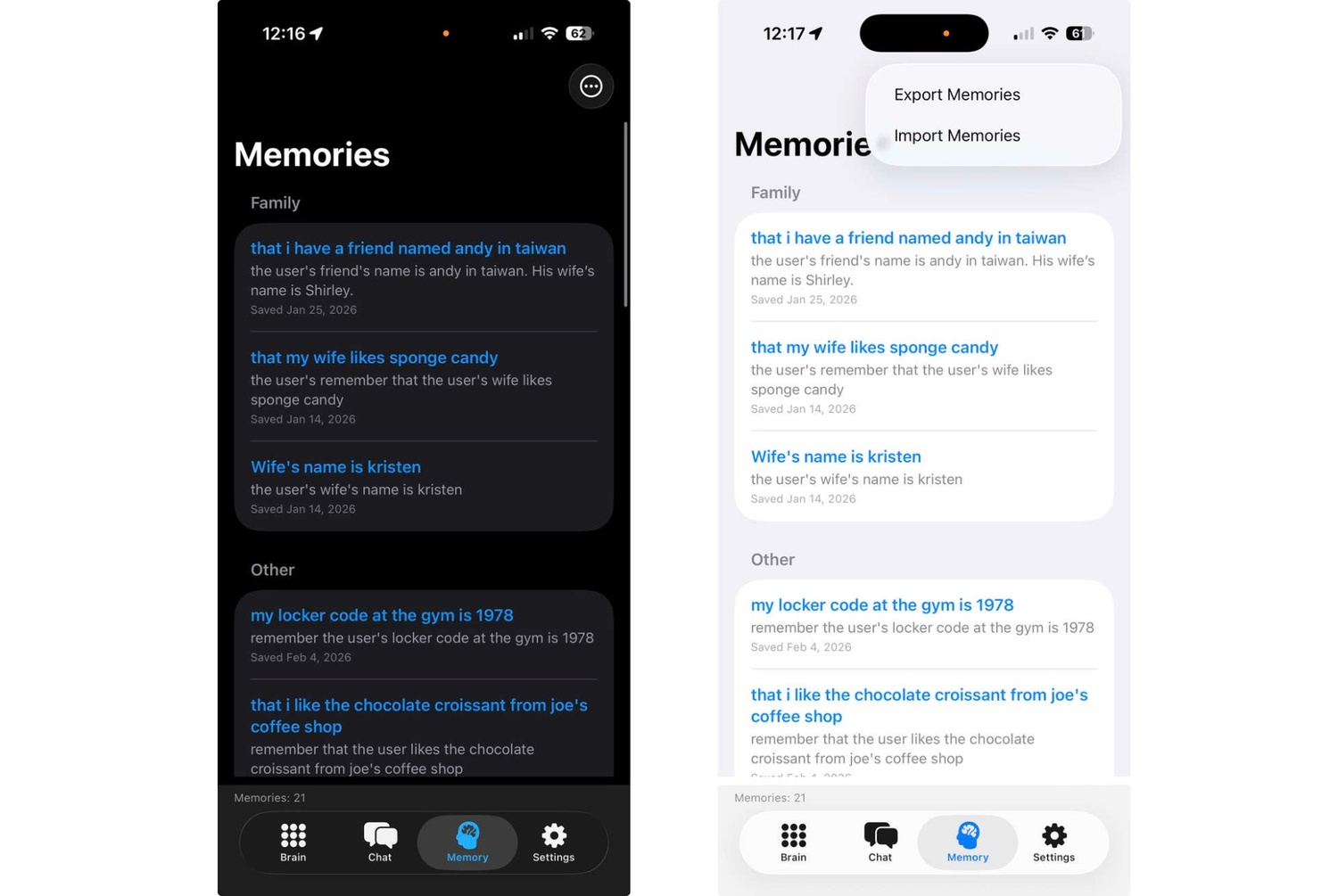 Each memory is also saved with a date recorded, so you can ask questions like: