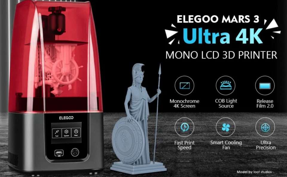 This 3D printer is for someone who is looking to create prints with resin, whether they’re tabletop miniatures or extremely detailed sculptures with production-quality parts. The level of resolution that the Mars 3 printer can provide is incredible and definitely a must buy product. Its entry-level pricing point is ideal for first-time resin printer users. For anyone who has never used a resin printer before, the Mars 3 is a revelation, because it is so inexpensive and never fails to create stunning prints. You can order the Elegoo Mars 3 Ultra 4K 3D Printer right now from the Official Website HERE for on