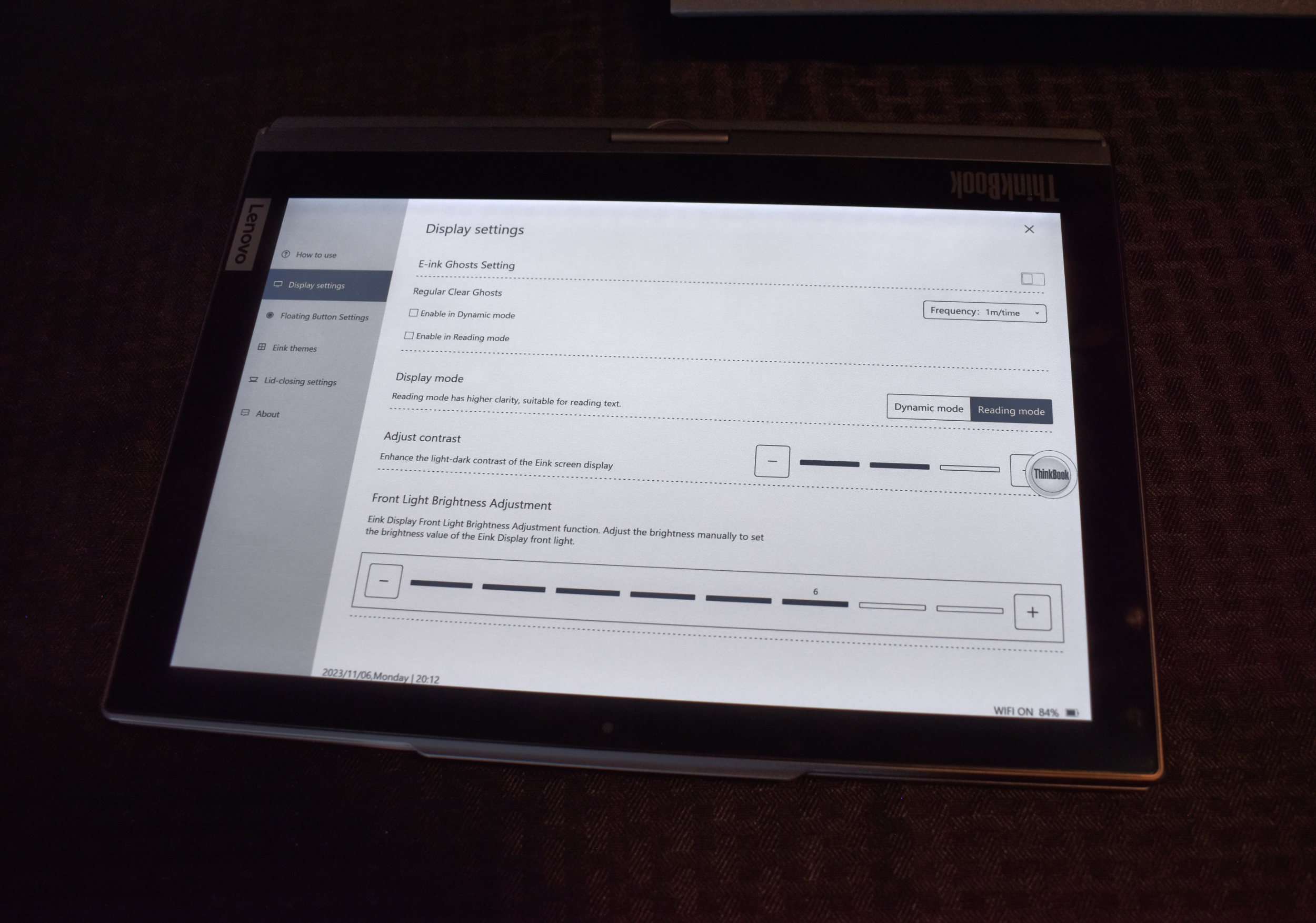 The Lenovo ThinkBook Plus Gen 4’s color E-Ink cover display is a fascinating piece of tech. Built on e-ink technology – famous for its energy efficiency and paper-like appearance, it uses countless microscopic capsules filled with positively and negatively charged particles. Sandwiched between conductive layers, these particles shift when an electric charge is applied, forming crisp, clear images.