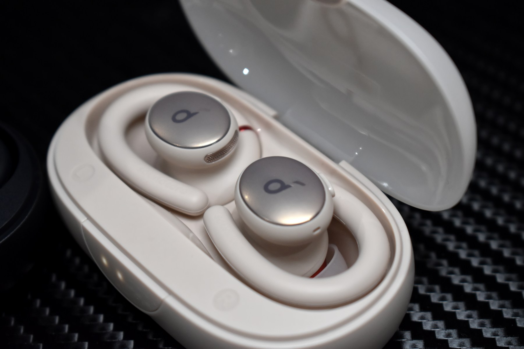 The charging case is compact and travel-friendly, though slightly bulkier than the Liberty 3 Pro’s case. It features handy indicator lights that display battery status at a glance, so you’ll always know when it’s time to recharge. As for the earbuds themselves, they’re impressively lightweight and designed with flexible ear-hooks that can twist up to 210º. These hooks wrap securely over the ear, offering stability during workouts without sacrificing comfort. In fact, they’re so unobtrusive that it’s easy to forget you’re even wearing them. When not in use, the hooks fold neatly into small loops, allowing the earbuds to fit seamlessly back into the compact case.